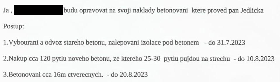 Pro ilustraci, tohle je canc, který mi soused předal (plus datum a podpis). Takže ofiko uznal, že zedníci, které objednal, to udělali úplně na hovno.