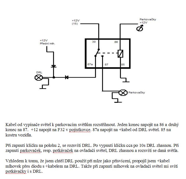 - ostatni zapojis tak jak mas v navodu, jen Ti zbude prazdny pin 87 (nebo si poridis rozpinaci rele, ktere tento pin nema)