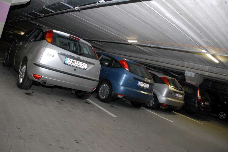 Po chvíli bloudění jsem konečně nalezl vjezd do nejspodnějšího patra parkoviště.