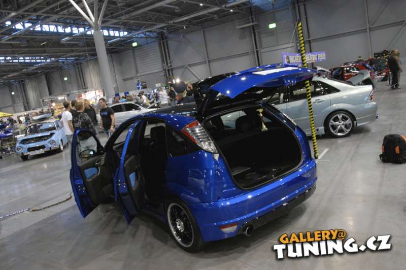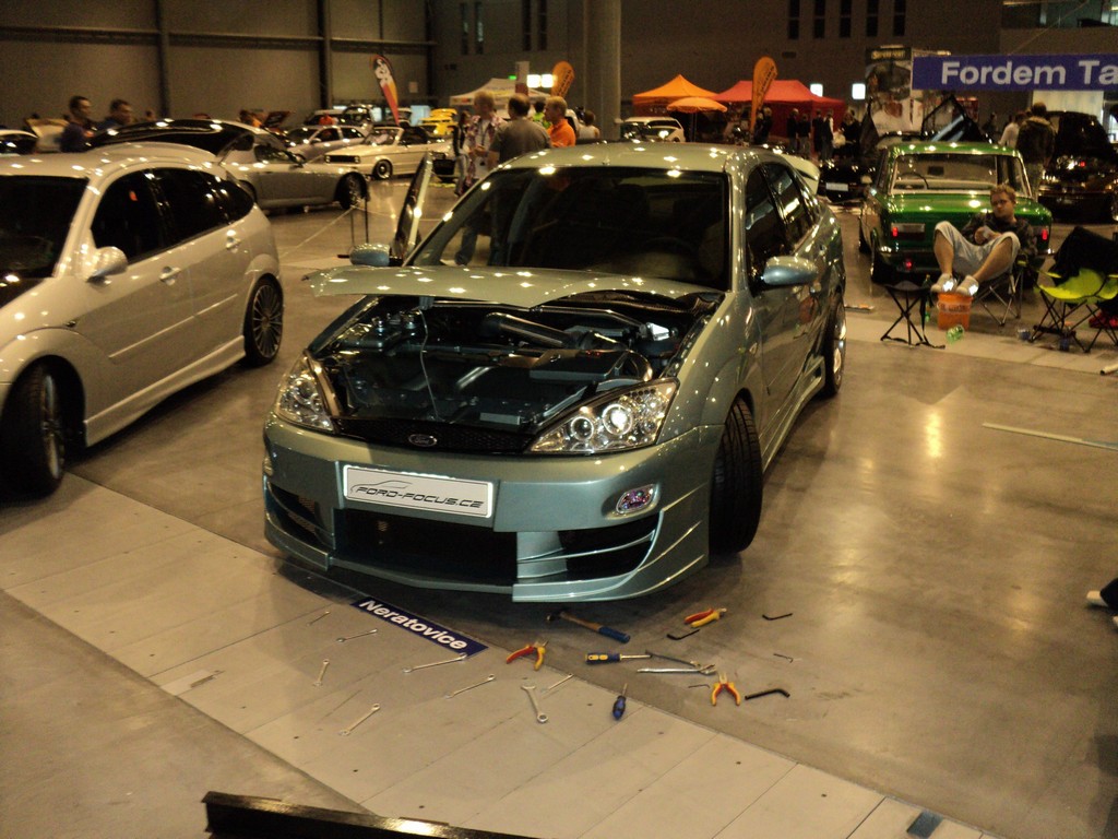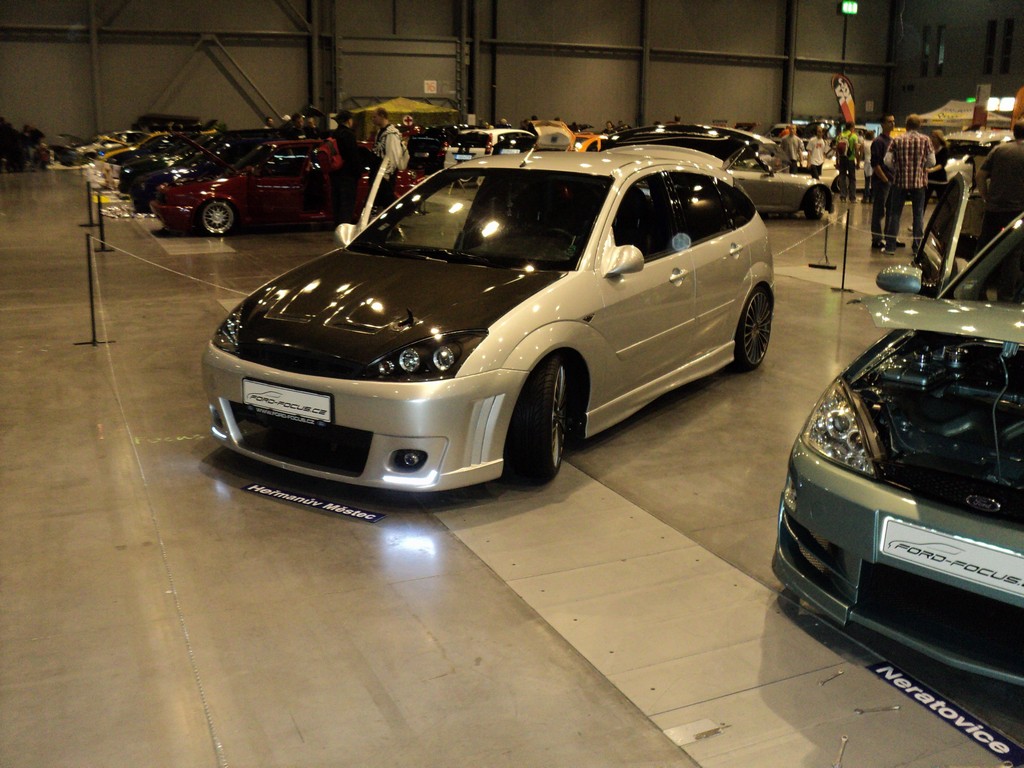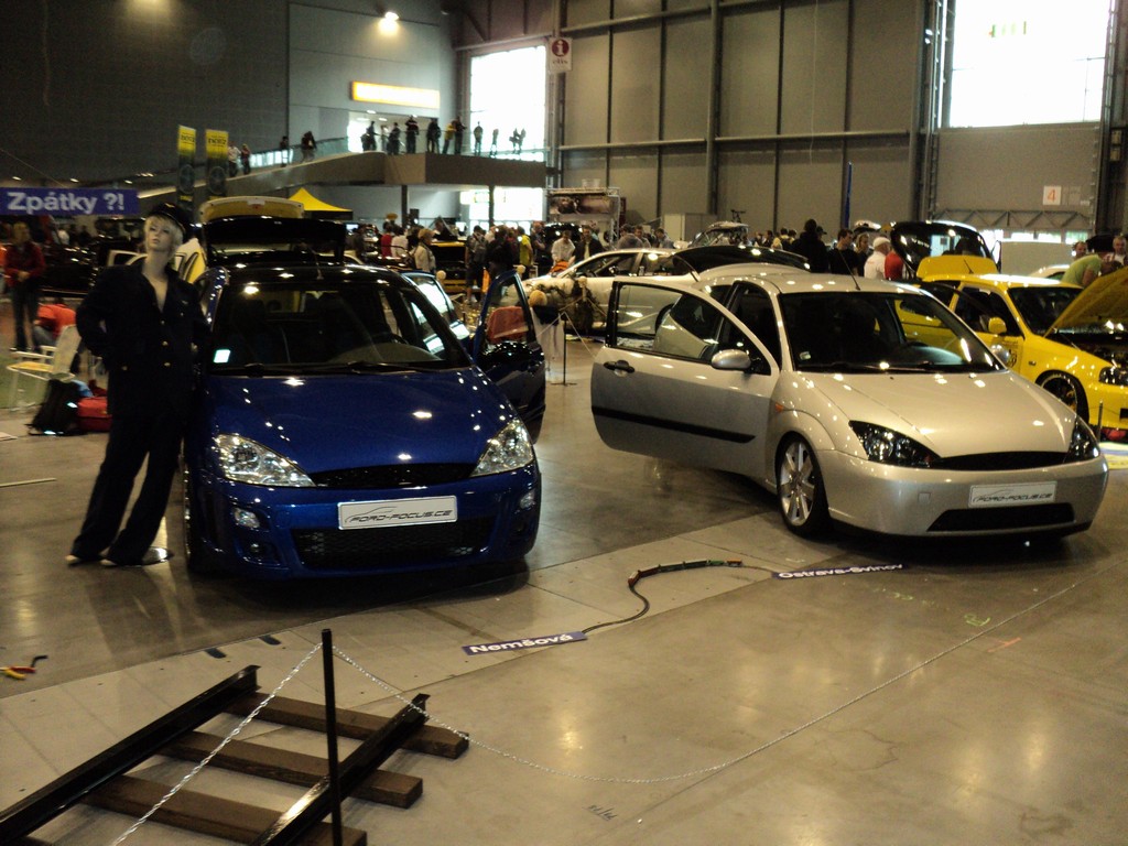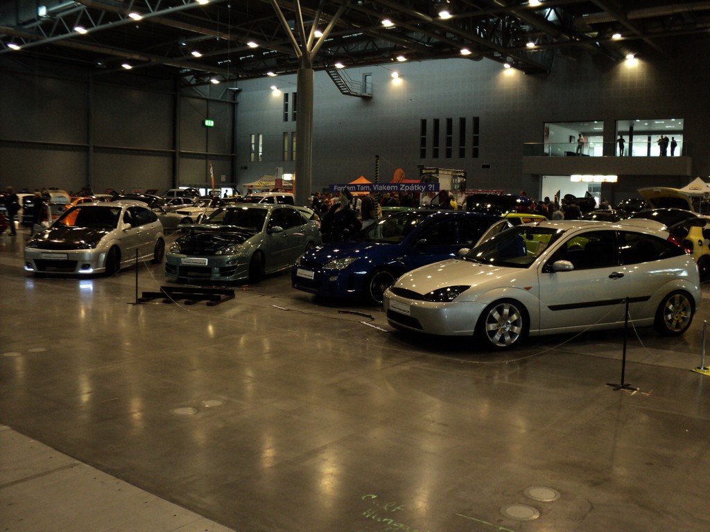 Druhy den rano uz jsme jeli zpet na vystaviste kde na nas cekaly blystici se focusy.Auta kolem byly velice paradni. Krom nasich tam bylo i par focusu. Lide od nasi sceny odchazeli s usmevem na rtech, o coz slo az v prvni řadě. Ja osobne jsem byl touto akci na vrcholu sve "kariery", dale nejsem ochoten investovat do sveho auta statisice abych se tam chytnul jako jednotlivec a s klubem se tam uz tezko dostanu. Moc velky dik klukum teda za tu moznost se tam dostat a stat v jedne hale s tim nejlepsim z ČR. Taky dekujeme clenovi hmerx za to ze dojel a sabotoval nam ceduli