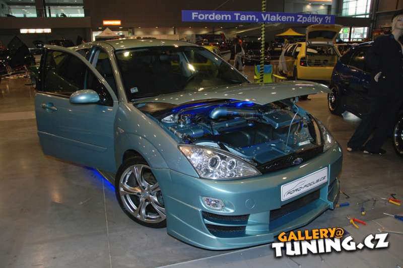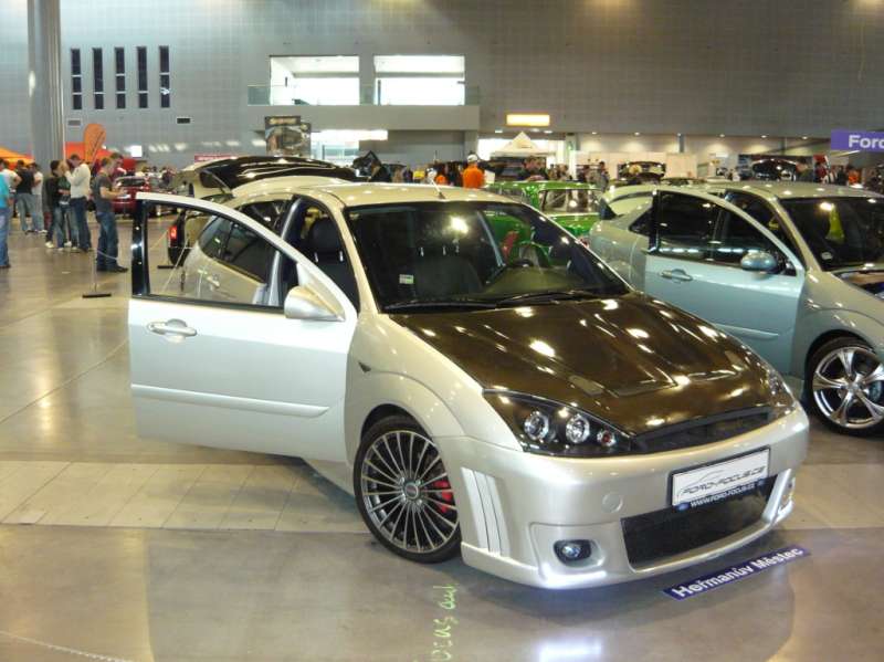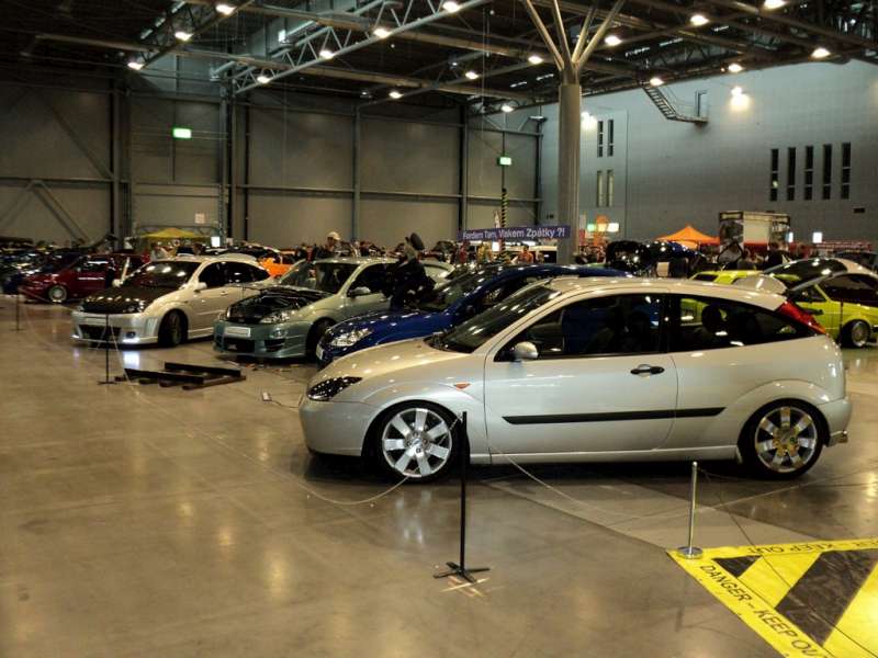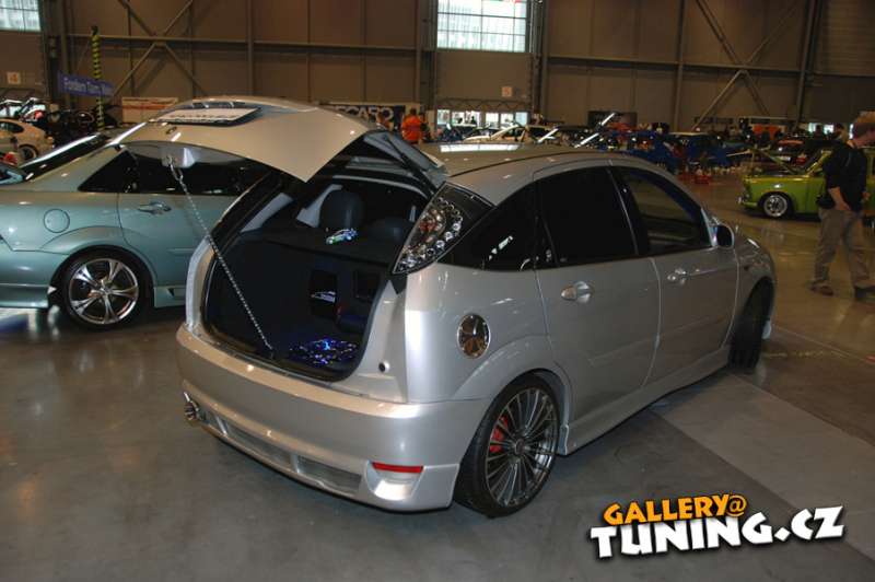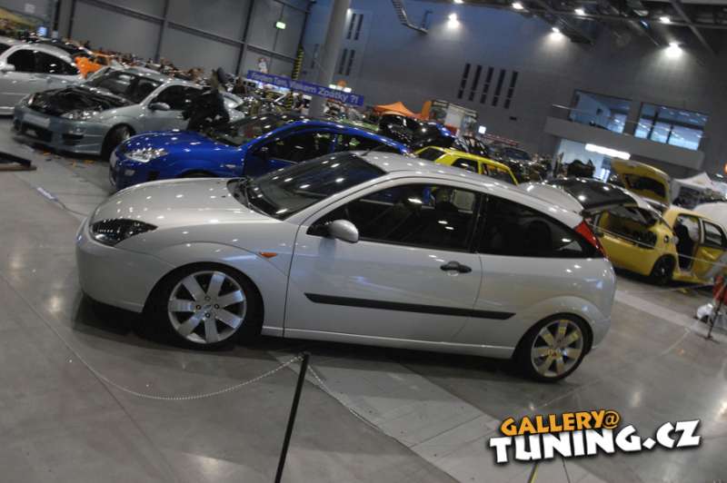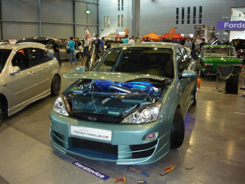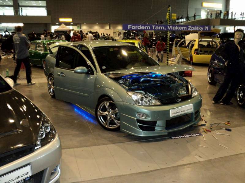 Druhy den rano uz jsme jeli zpet na vystaviste kde na nas cekaly blystici se focusy.Auta kolem byly velice paradni. Krom nasich tam bylo i par focusu. Lide od nasi sceny odchazeli s usmevem na rtech, o coz slo az v prvni řadě. Ja osobne jsem byl touto akci na vrcholu sve "kariery", dale nejsem ochoten investovat do sveho auta statisice abych se tam chytnul jako jednotlivec a s klubem se tam uz tezko dostanu. Moc velky dik klukum teda za tu moznost se tam dostat a stat v jedne hale s tim nejlepsim z ČR. Taky dekujeme clenovi hmerx za to ze dojel a sabotoval nam ceduli
