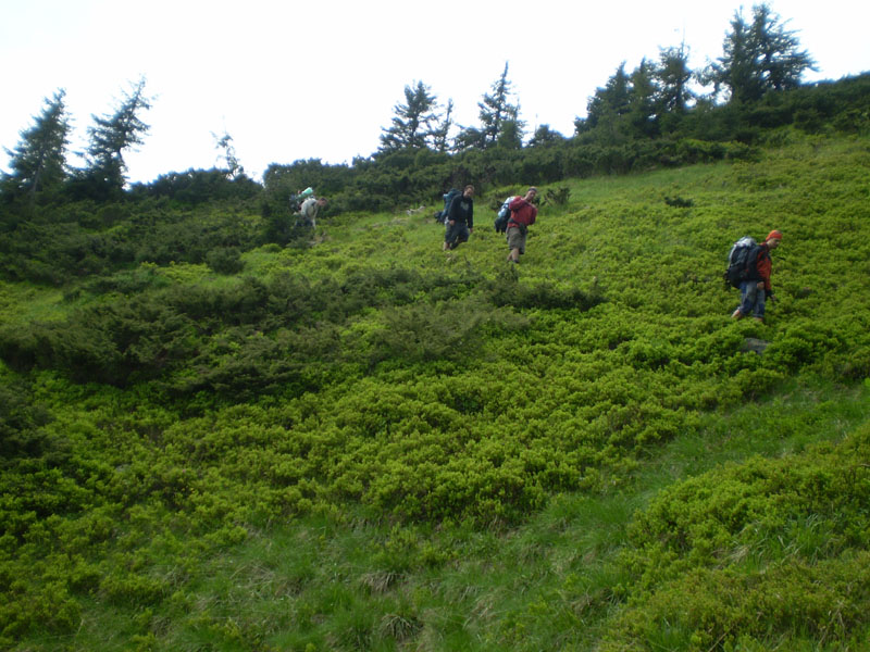 My jsme přešli ten černohorský hřeben...Den příjezdu jsme chtěli vylézt na hřeben,ale díky špatné orientaci jsme zůstali viset v těch neprostuipných klečích.Prostě jsme se blbci začali drápat přes ty houští,po kamenech na 30 st.svahu.Netušili jsme na kterou stranu je to nejlepší.Zvolili jsme radši lehký sestup a asi po 4 hodinách se dostali na trávu.Takže jsme našli rovinku a zakempili.Hřeben jsme teda osedlali až den další.Od černé hory jsme tedy mířili k Hoverle.Díky naší špatné mapě(něco jako autoatlas