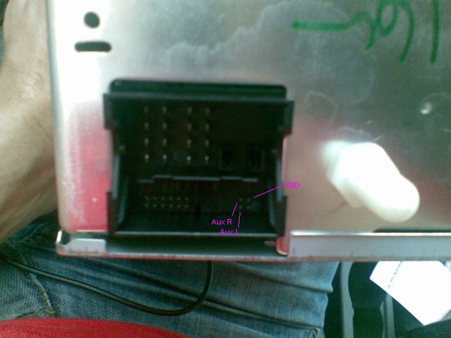 Takže už jsem se dostal k autu. Tady je foto, kde mam vyvedený AUX: