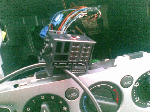 Protoze jsem byl bez pripravy, pouzil jsem Batmanovy sponky a Cerfovy kabliky z case. Nemam popelnik a tak jsem chtel vyvrtat diru do horni casti schranky pro popelnik (pod ovladani EPS a ohrevu oken), ale je tam tak debilni pristup, ze jsem to radsi vzdal. Nastesti jsem ve schrance objevil dve dirky, kudy lze kablik docela dobre protahnout k radiu (chce to stihlou ruku, nebo sundat kryt, ktery je kolem radia - jsou to 2 sroubky).