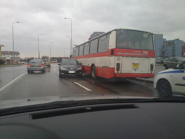 Tak kdo dnes v Líšni zapomněl dát ručku a nechal svoje mondeo třít o bus?