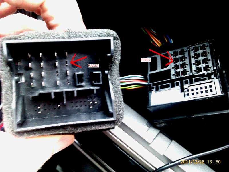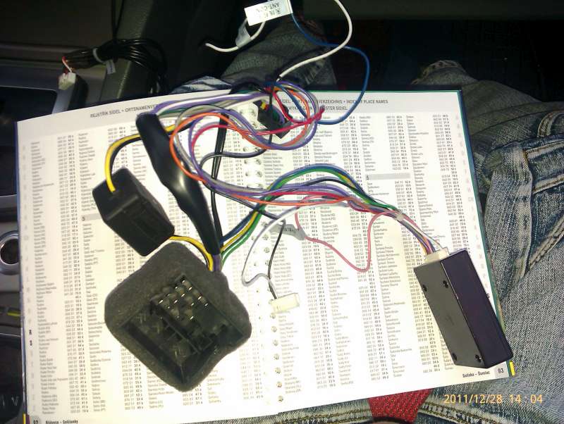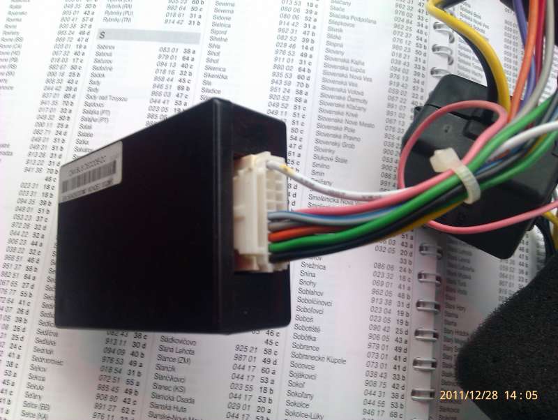 mam trošku iný zvazok kablov ako blackhawk.. mam totiž na najhrubšom žltom kabli aj poistku, a ešte niečo je v tej krabičke, nejaky maly tranzistor alebo ako sa to volá, taky modrý valček, ale vnutro tej čiernej krabičky som nefotil... nehrá to žiadnu rolu nedalo mi aby som nezistil, cez ktorý pin ide do toho ford adapteru šťava po zapnutí svetiel. aj som ho našiel.. problem je ale v tom, že na tom protikuse tam ten pin vyvedený nie je.. a neviem tam ani ten oranžový kablik na osvetlenie natiahnut, lebo z druhej strany konektoru je plošák a nie klasické piny ako na ford adapteri.. ešte tu mám dve fotky