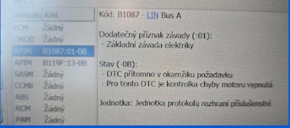 V APIM asbuilt přibyl řádek 7D0-08-01 a 02. Neznám k nim bohužel konfiguraci a dále se mi vyskytuje chyba Lin bus A, viz obrázek.