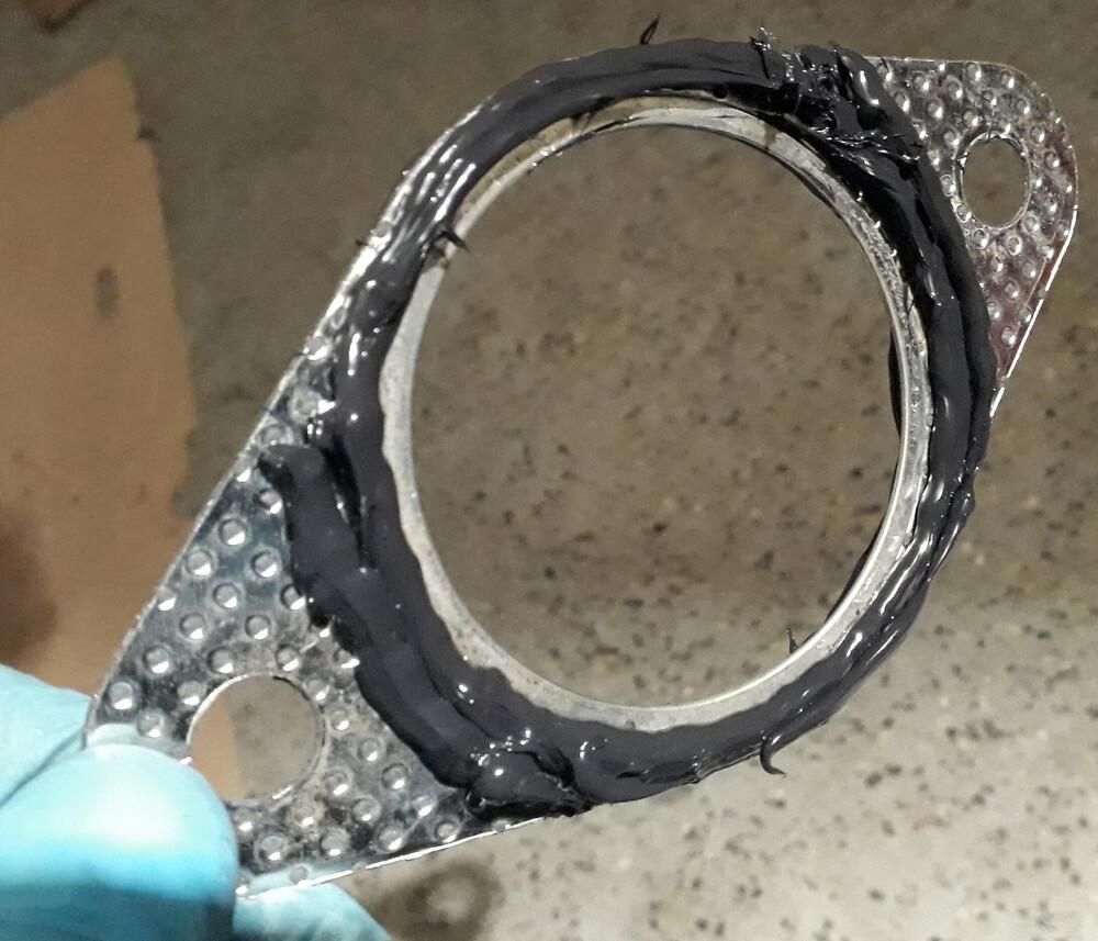 Dopadl jsem stejně jako kolegové z AUTOvKELLY, tj. z toho předního spoje to profukovalo (dokonce kapal kondenzát), i když jsem to dotáhnul úplně na krev. Příruby byly dobře očištěné, takže jsou spíše nerovné. Tak jsem tam napatlal trochu toho vysokoteplotního silikonu. Vím, že to není ideální, ale dokud jsou matky čerstvé, tak to půjde snadno povolit na případnou úpravu. Nic jiného jsem neměl po ruce a nechávat to nasucho prskat se mi nechtělo. Uvidíme...