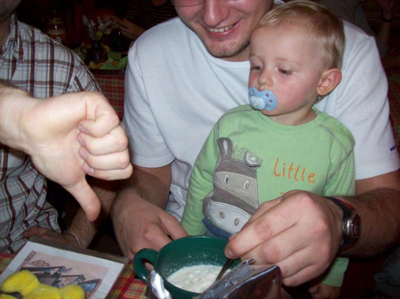 A jedny z posledních:samozřejmě i vzorný otec se musí postarat o syna.Něco dobrého/tedy asi dobrého/mu připravil,ale bylo to takové divné.Sypal mu do misky takový bílý prášek a nechtěl nám v žádném případě prozradit co to je :lol: .