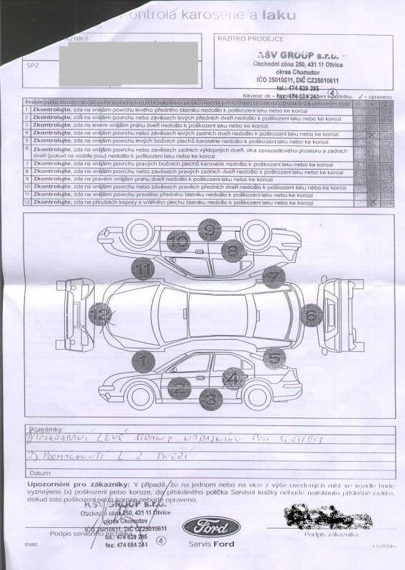 Mám dávám ho do přílohy. Z popisu auta by ten,kdo auto neviděl , řekl , že mám nějakej starej bouranej vrak. KŠV Chomutov prodává hlavně Hundaie a asi rok i Fordy, ale pořád preferuje Hyundai a tím co předvedli, mi snad chtěj dokázat, jakou jsem udělal chybu, že jsem si nekoupil ten korejskej brak. Na Ford info dali za pravdu KŠV. Tímto jsem zanevřel na autorizovaný servis. Ono i to co udělali a neudělali během servisní prohlídky mě také dost dorazilo.