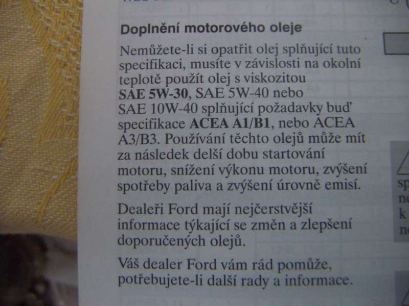 jo to sem se docetl ze ford doporucuje 5W30 ale uz ho tam mam takze s tim nic nenadelam, navic ten olej menil znamej jeste nez sem auto od nej koupil , taky me to zamrzelo ze a auto co ma relativne malo km a on tam dal 10W40