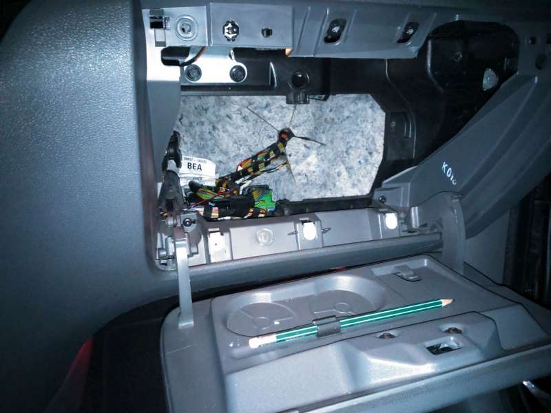 1. Vymontovat kastlik (vyndat vnitrek) pred spolujezdcem a dostat se k pruchodce (firewall).