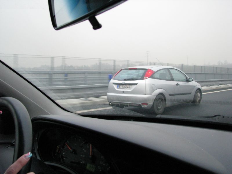 Právě s tátou vyrážíme na místo srazu - Slovnaft NJ. Ještě musím trošku zkulturnit auto, bo je jak prase.