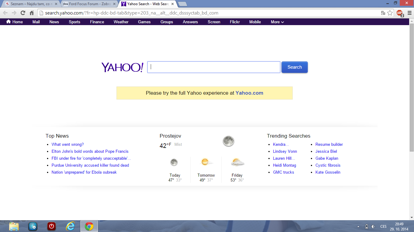 Kamaradi - nevite proc se me do prohlizece stace a porad se*e yahoo??? jako vychozi stranka? Jak na google chromu tak i na exploreru... jednou se me to podarilo nejak smazat a je to tu znova