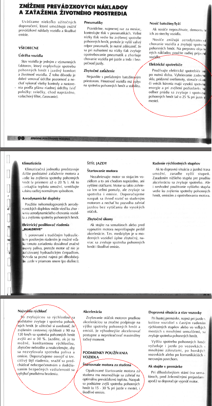Je to sice z Fiat prirucky, ale myslim, ze to plati obecne. Dovolil som si oznacit pre mna zaujimave udaje. Elektricke spotrebice zvysuju zpotrebu, samozrejeme aj jazda studenym motorom, takze kryt motora umozni aj rychlejsie prehriat motor, ako pises aj ty a tiez zaujimava je aj dialnica, kedy dochadza k vyraznemu zvyseniu spotreby. Svietenie je 55+55+5+5+10+10W(nejako tak, je to v teme o dennom svieteni - ziarovky v predu, v pristrojovke, vzadu a aj osvetlenie znacky). Celkovo, ked to spocitam, tak 6.8 nie je neralne a to sa da ist este na 15" Energy savery na plechacoch s puklicami. :wink: