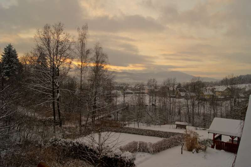 Právě sem uříznul vlastnoručně zasazeného smrčka a venku krásně vánočně,tož sem to cvaknul z okna