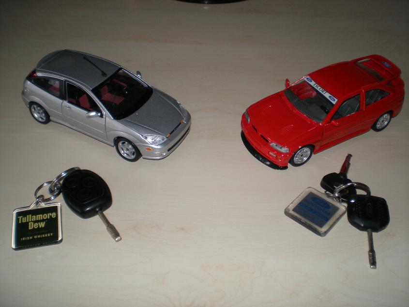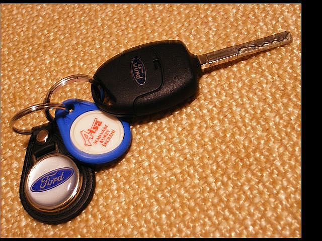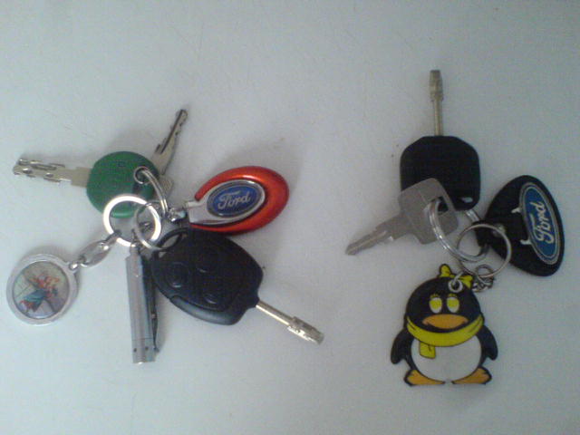 Jinak toto jsou moje klíče. Vlevo Focus, vpravo Escort. Světýlka a modrý ovály samozřejmostí