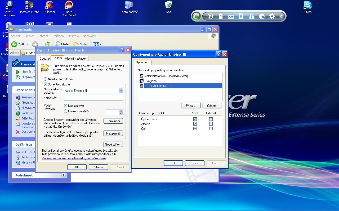 - Menu: "tools" -> "folder option" -> zalozka "view" -> neviem ako sa vola ta polozka vo win xp ale je to nieco ako "pouzit jednoduche zdielanie" alebo take daco a treba to odskrtnut. Potom budes mat na tej istej polozke moznost vykonat zmeny.