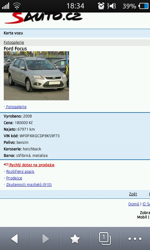 jinak mam starosti s tim VINkem kdyz jsem ho zadal do fordzona tak nic nenasel a kdyz jsem ho zadal do cebie tak mi vyskocilo K tomuto vozidlu bohužel nemáme k dispozici žádný záznam o stavu tachometru tak ted nevim co radite ted? Nebo prosim jestli ma nekdo chvilku juknete se jestli nenajdete vic dekuji...