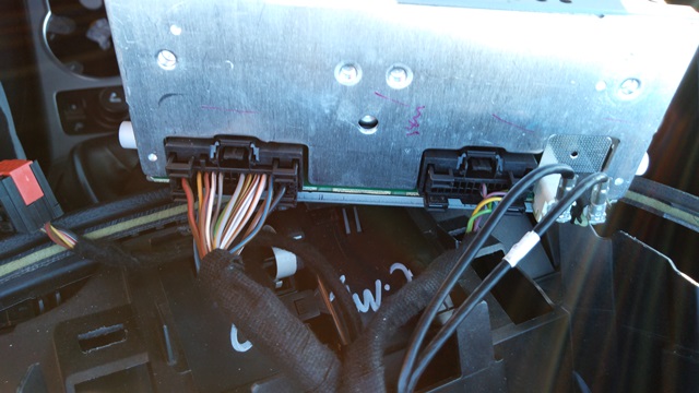 spatne hledas - podle fotky zadniho konektoru tam vyvod na centralni reprak je (pin 8 fialovo-zeleny a 20 modry)
