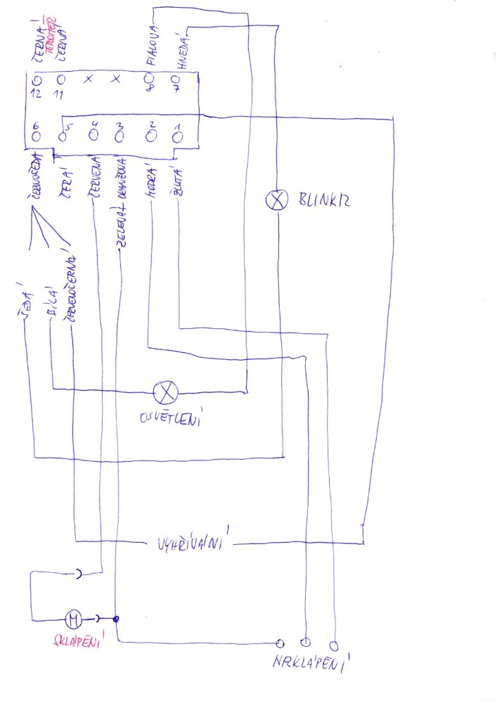 Dohledal jsem schéma, které odpovídá mým drátům, takže tady také není chyba. To skoro vypadá, že tohle chování dělají nevhodné parametry motorku sklápění. A to se tedy zkouší blbě. Já tam snad na chvíli dám originál (zase trochu funguje). Ale měnit ten motorek není na deset minut.