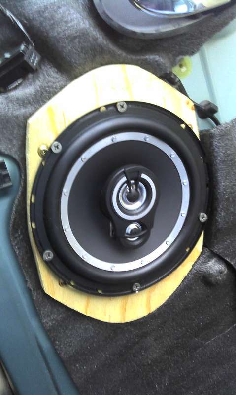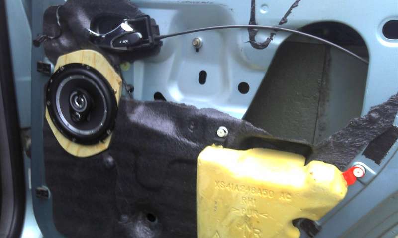 Tak dneska som to bol vyskúšať, ale najprv som si musel vyrobiť redukcie. Rozhodoval som sa medzi rozmerom redukcie podľa malého oválu reproduktora z Focusu a medzi rozmerom veľkého reproduktora z Mondea mk1. Nakoniec som prirovnal ten väčší ovál z Mondea a pekne zapasoval do diery na repro vo dverách, problém bol len v dierach na šróby, ktoré samozrejme nesedeli. (To je aj vysvetlenie prečo pasovali redukcie na ten focus vyššie spomínané, ale nesedeli diery). Po tomto zistení bolo už rozhodnuté. Urobil som redukciu v tvare a veľkosti zhodnú s tým reproduktorom z Mondea a diery som naznačil a navrtal podľa dier na reproduktore z focusu. Našiel som si stred vyrezal dieru s priemerom 144mm potrebnú pre osadenie toho Sencoru, ktorý som mal ešte doma. Pripájam Vám aj fotky pre porovnanie veľkostí reproduktorov a redukcie, ktorú som vyrobil, a aj ako to vyzerá namontované v dverách. Viem mal by som ho otočiť naopak, aby bol ten výškový reproduktor hore a ten stredný dole, ale konektory, by boli dolu hlavou a mám strach, aby sa nezlomili káble po čase, no ešte uvidím. Potom som nahodil tapacír, či bude všetko v pohode a vyzerá to tak, že je všetko v poriadku. Uvidím, keď zapojím tie reproduktory.