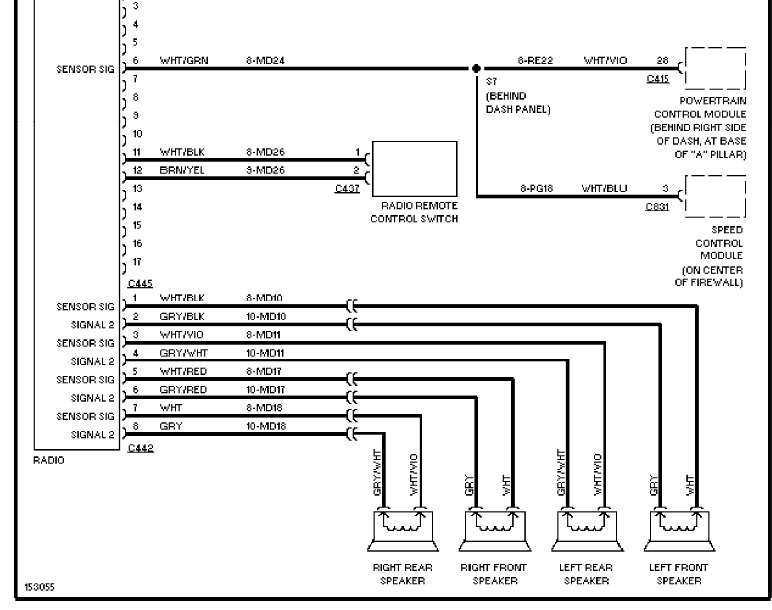 Tak, našiel som túto schému (mám celé PDF), len niesom si istý, ktoré je + na tom signále do repro a ktoré -. Predpokladám, že "signal2" je + a ... "sensor Sig" je -. Je to tak alebo sa mýlim?