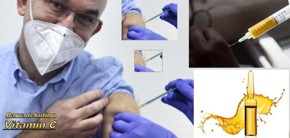 "Tak přátele mě to nedalo a malinko jsem pátral po barvě tekutiny která je natažená v injekci pro Blatného a ono ejhle všichni víme že vitamin C má oranžovou barvu ale taky víme že vakcína proti covid-19 je křišťálově průhledná