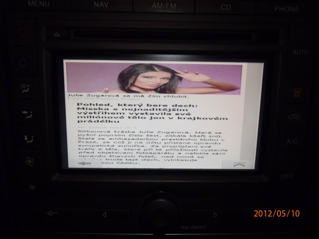 tak ve předu je jen obrazovka rgb, dotykova vrstva, tuner a zesilovač, cd mechanika, že sadu kde je dvdrom, jde pouze signál rgb do monitoru, dále komunikace dotykově vrstvy, zvuk při navigování. nic víc. tedy alespoň myslim. je to jako počítač, máš bednu a kni pripojis myš a monitor. takže dvdrom je jako pc.