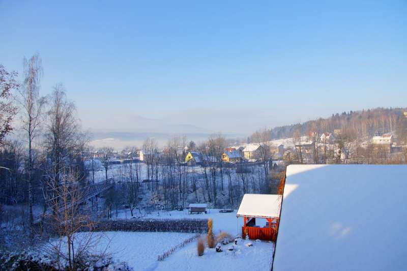 u nás po ránu azuro, teď už sněží jak hovado, vary -4, boží dar -9