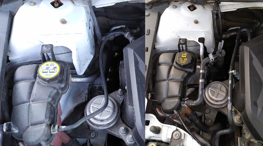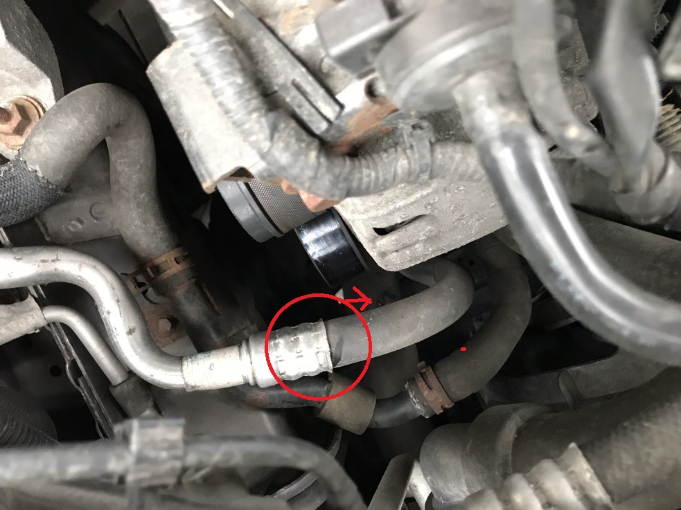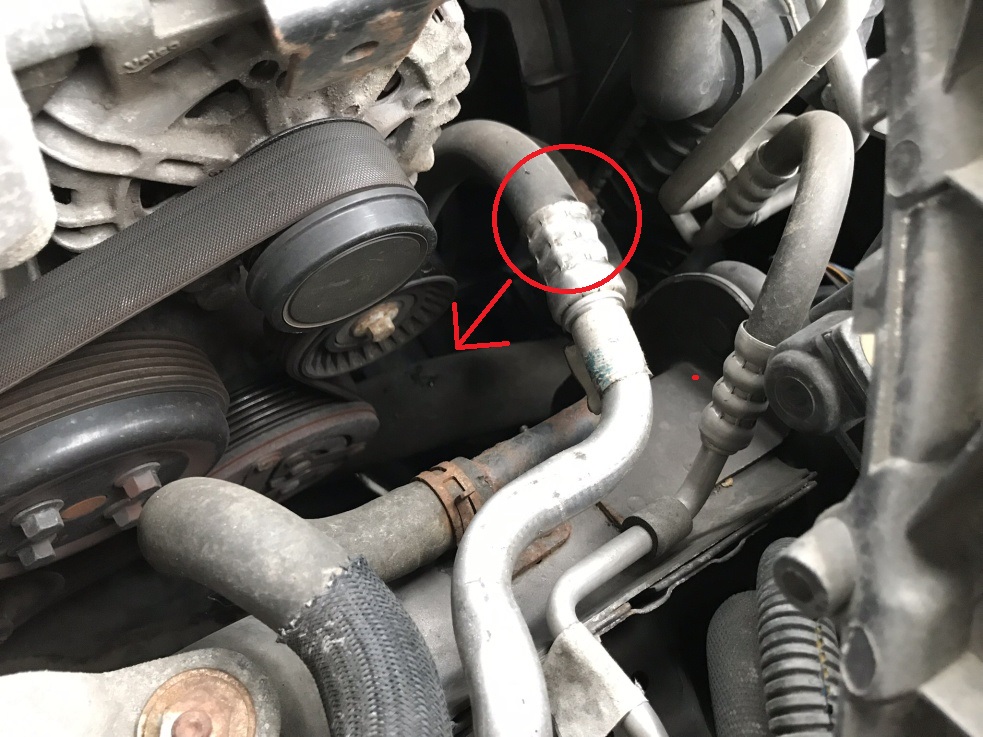 Bylo zrovna po delší několikahodinové cestě a když jsem se díval kolem, tak jsem objevil jednu z hadic poblíž a menší netěsnost - viz foto. Odkapala ze spoje nějaká tekutina o patro níž.. nenapadá vás jestli je to hadice od chlazení motoru? Nějak mi nešlo dohledat, kam to vlastně vede.. Díky