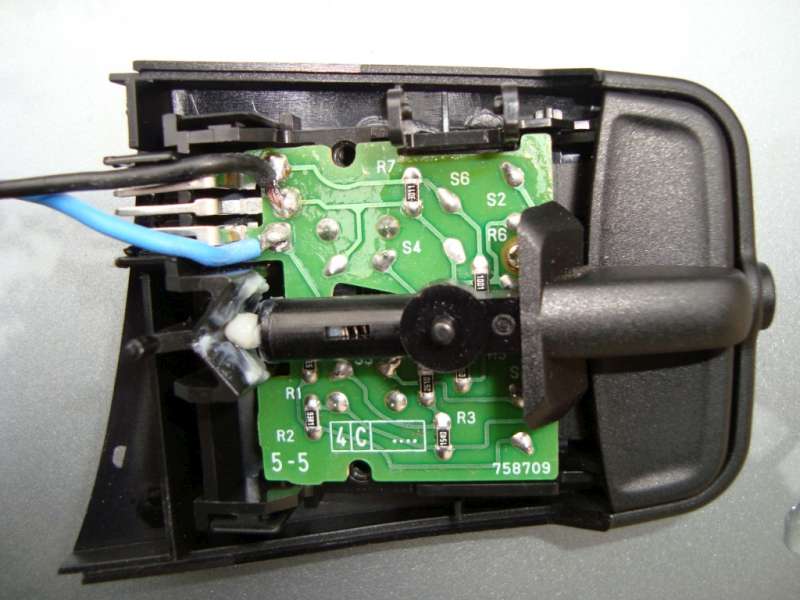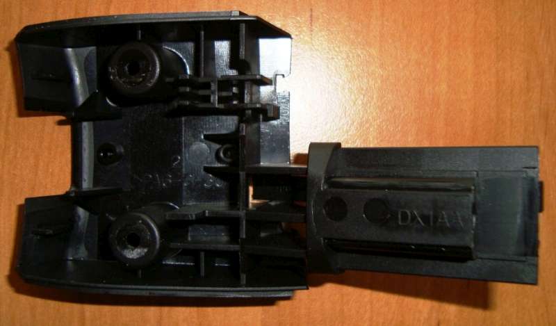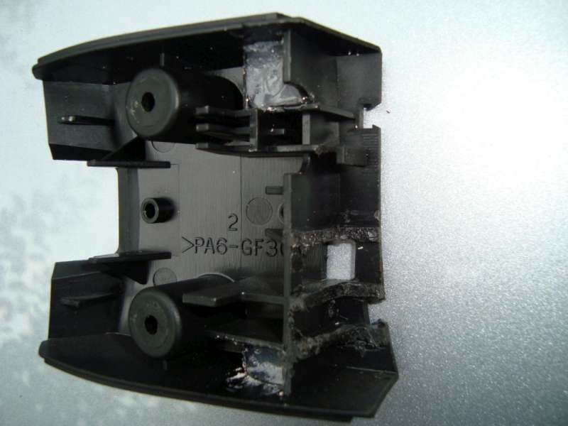 Pak už jen správně svrtat a přišroubovat do těch vyplněnejch dutin (ovládání se ani nehne). Z této strany to sice nevypadá moc pěkně, ale kámoš to viděl až namontovaný a prý to vypadá jako originál