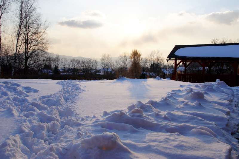 +4°C, zamračeno...ale sníh tady ještě nějaký máme, tak si ten nový nechte.