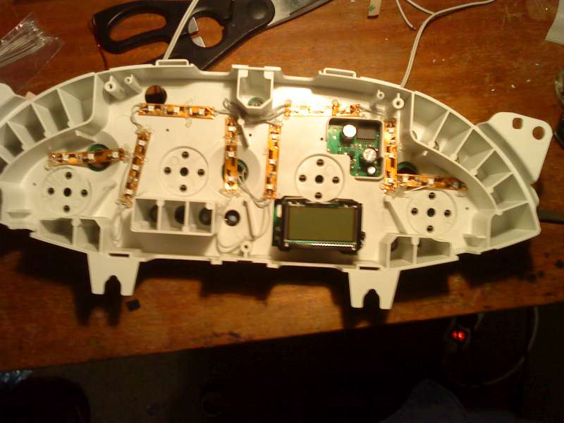 Hele klasika.. v Gesu za 25 ,- kč jeden pásek po 3 ( nezalitých ) diodách. nekde se fouknul celej pásek ale v rádiu se museli odletovat ptž tam už SMD jedny měli. ty zelený... momentáně sem udělal návrh v PC na ,,Ventilaci,, která pude taky do modra.. vyvrtal sem vrtačkou ( podobně jako damon ) postavičky a čísla a přes ně pak nalepím vytisklou šablonu kterou hodim do bezbarvého laku