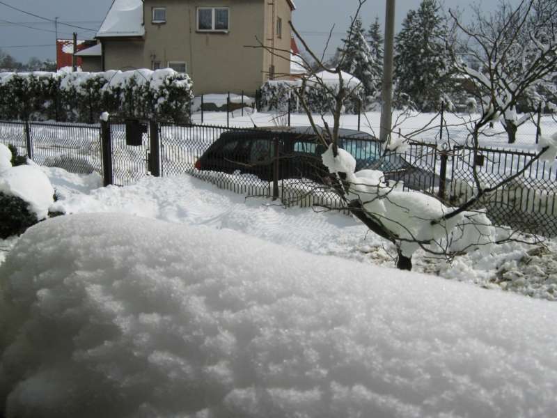 , tady přes noc padlo možná 2cm ale teď už to vypadá na jaro, venku svítí sluníčko a obloha jen s pár mráčkama