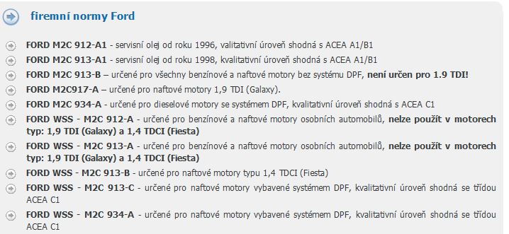 Tady sem našel shrnutí firemních norem Ford. Možná to někomu k něčemu bude.