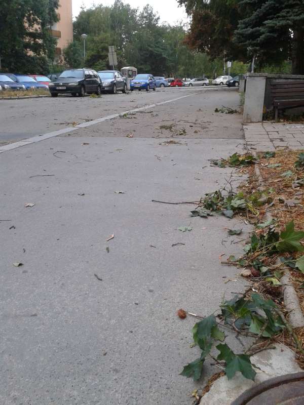 Tak zatímco v sobotu na mě v autě vykoukla příjemná teplota, v neděli konečně po víc jak měsíci pořádně zapršelo. Křáky v té bouřce lítaly po ulici jak na divokým západě a s obavami jsem taky sledoval stromy, které se v náporu větru ohýbaly nad auta na parkovišti. Nakonec to dobře dopadlo a jediná památka po bouřce byl ranní borel na ulici.