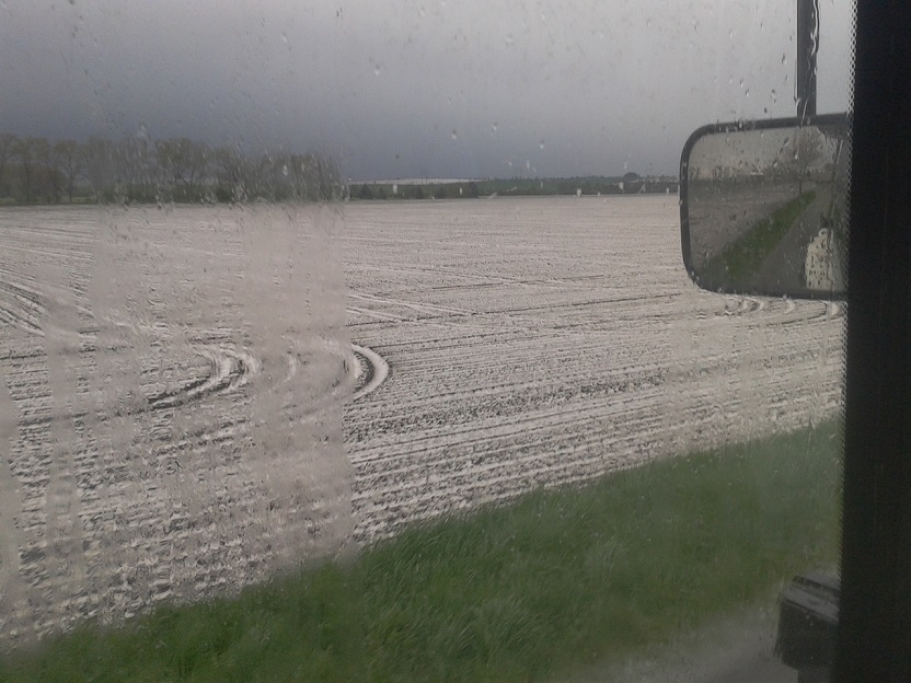 Dnes pred druhou hodinou u Lutina - kroupy jak prase