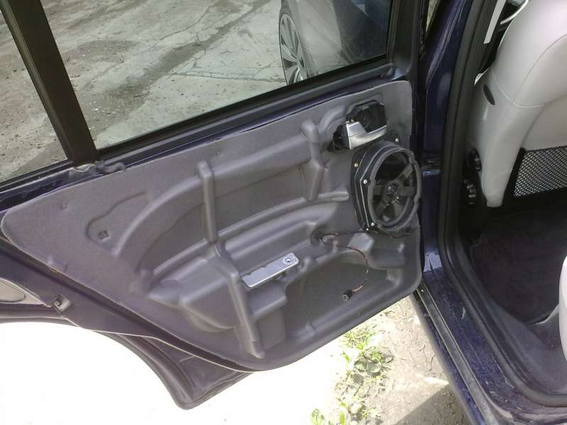 Ve dveřích to vypadá takhle Takže žádný igelit zde není a je tam pouze takový materiál jako se používá na izolaci trubek. Toto mokré nebylo a je to přilepeno stejným tmelem jako světlomety. Je tedy nemožné, aby tudy teklo. Když do dveří teče přes sklo tak se voda dostane ven přes malý otvor ve dveřích, který je na opačně straně jako panty (v tom plochém místě dole). Po odstranění reproduktoru jsem šahal do dveří a trochu vody tam bylo, ale ta určitě nemohla téct přes tapec, protože nabyl mokrý a voda byla níže než tapec.