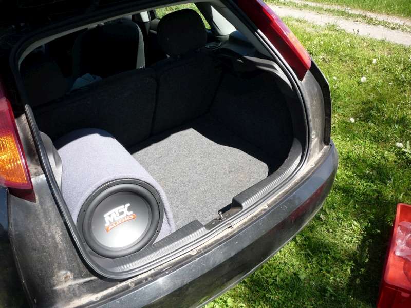 subwoofer MTX audio RT12AT + zesilovač Crunch GPX500.2. Instalace mi trvala asi 4 hodiny