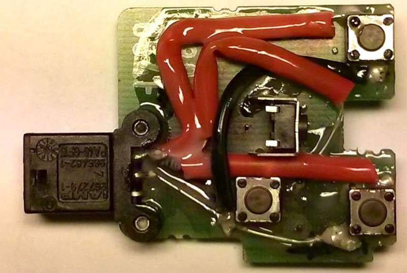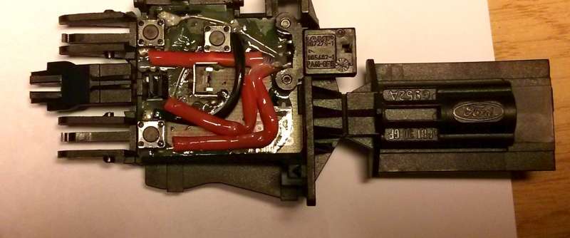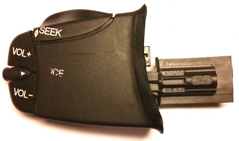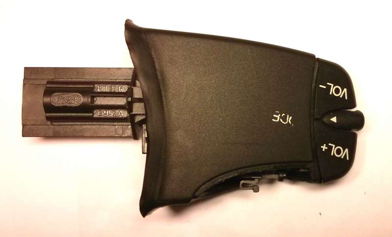 Nejprve je potřeba oddělat ovladač od "sloupku" s volantem, stačí malý šroubovák a zezadu na ovladači zmáčknout, ovladač se uvolní. Pak už jen odpojit konektor a máme tohle: Nejhorší část bylo rozdělání ovladače, nejprve tlačítko SEEK Pak tlačítka hlasitosti Tlačítko mode může zůstat na místě, oddělá se až po vytažení vnitřku ovladače z pouzdra.