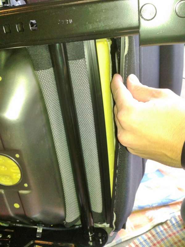 4) Vycvaknutí potahu zespodu sedadla (provádí se asi na 3 místech)