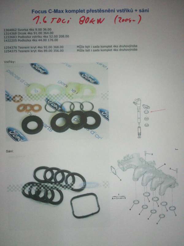 Mám v tom rád pořádek, tak jsem si to vytisknul, třeba to bude i někomu jinému nápomocné ještě jednou zopakuji co zde již někdo psal materiál na komplet přetěsnění vstřiků a sání (když máte u vstřiků loužičky nafty nebo oleje a nevíte odkud, je lepší vyměnit vše, za těch pár korun to stojí):