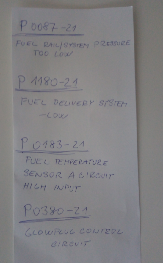 Čaute, dnes do obedu všetko ôk, poobede sadnem do auta a po 200m motor vypol, po dlhom toceni naštartuje, 10s pobeží a zase vypne, zase točí 5s a dookola. Chyby tieto