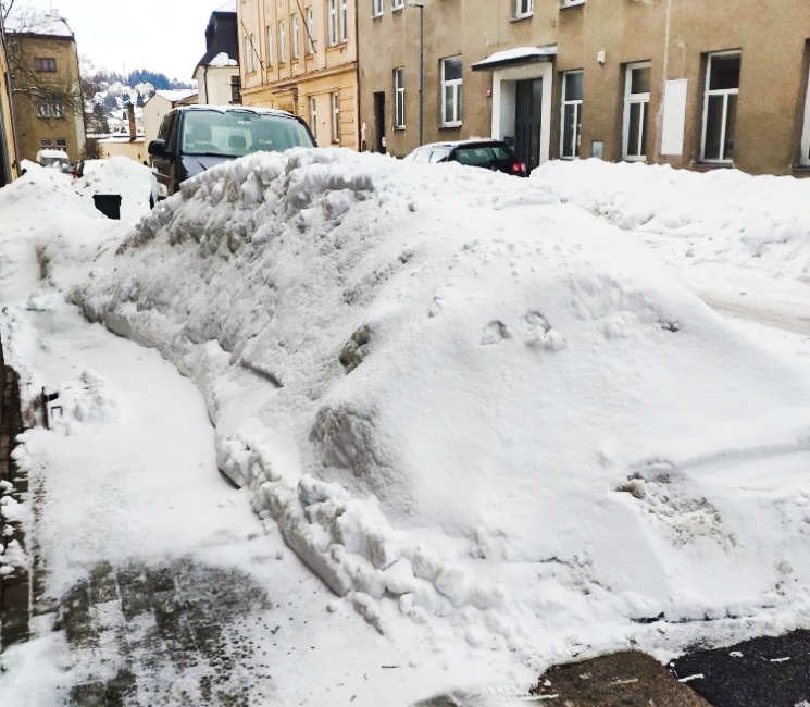 Před osmou večerní nikde nic, když jsem se snažil zacouvat na parkovací na místo, tak od kol lítalo bahno a ráno vstanu na autě zamrzlá 5 cm vrstva sněhu