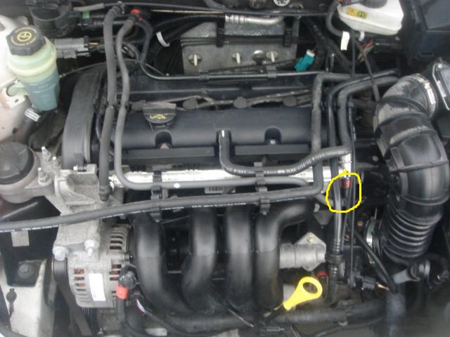 .Spojka toho už má dost za sebou a zabírá až dost nahoře, ale pořád se tím dá v klidu jezdit a ani při jiných situacích nikdy zatím neproklouzla.a teď k tomu na co se chci zeptat.Zjistil jsem že při nastartovaném motoru je slyšet syčení z místa které je označeno na obrázku níže.Jakoby z toho ventilku červemýho nebo co to je, nedá se to přesně identifikovat odkud to přesně syčí.Pokud přidám plyn tak syčení přestane.Když plyn pustím syčí to zase.Je to špatně nebo ne?pokud je to špatně tak asi bude problém tam.Pak mě ještě napadlo.Jakou roli na padání otáček při řazení má čidlo spojky nemůže to způsobovat i vadné čidlo spojky?Jinak nemám žádný problém s chodem motoru volnoběh atd..Co myslíte?