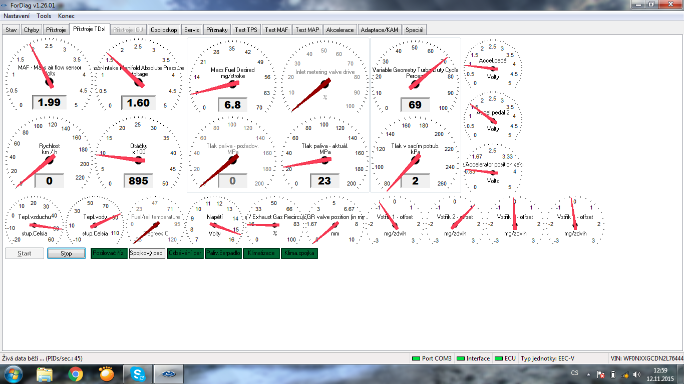 Poridil sem si forddiag po pripojeni mi ukazuje dobijeni cca 15V,po kontrole merakem,je to stejne.Tech 15V tam je porad i pri zatezi.Kdyz sem menil pred dvema lety baterku bylo tam tech 15V taky ale to jsem myslel ze je normalni po precteni nekterych prispevku proc se tam davaji ca baterie kvuli vetsi voltazi.