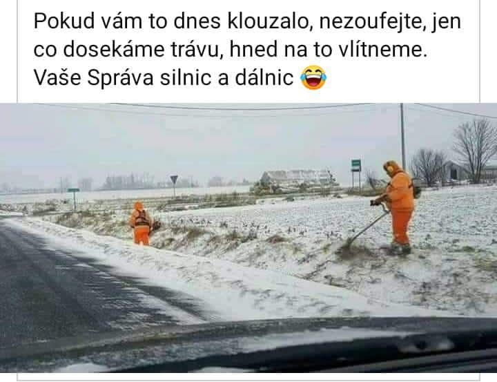 To že mají rozdělený nějak oblasti, to jsem pochopil, ale oni to nějak s tím hrablem nedělají snad nikde, nebo já sjem to teda nikdy neviděl. Kdysi jsem psal, jak jsem dieselem jel a vidím oranžový majáky a Tatru jak prase s tím největším pluhem co může vzít, tak jsem mu milostivě uhnul, protože jsem měl snehu po dveře a on mi poděkoval a jen to posolil a jel... :mrgreen: Nevím, jestli se rozhodoval, že dokud on projede tak je to cajk...to já bych mohl mít taky sněhuláka na střeše a on by projel :mrgreen: