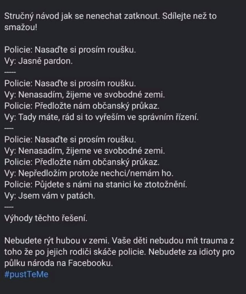 Stručný návod jak se nenechat zatknout. Sdílejte než to smažou!