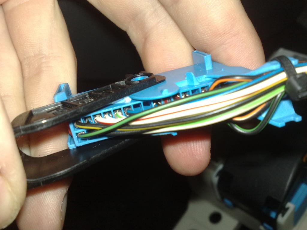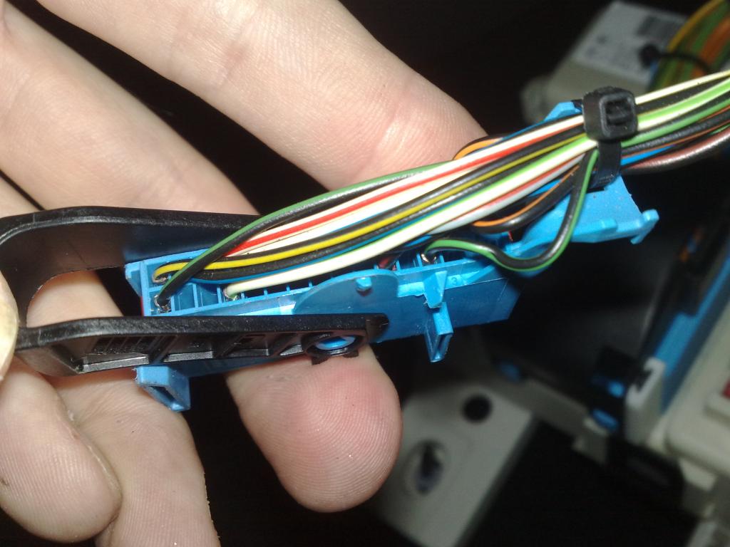 Na té horní fotce, když si ji zvětšíš je vpravo dole napsaná 3 v tom modrém konektoru, a ještě u některých pinů jsou také číselka, a jdou po řade, tuším že jsou ve dvou řadách, takže od nich napočítáš piny 10 a 18 jestli si dobře pamatuju. Je to hnědý a bílý drát :idea: